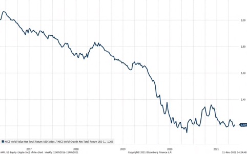 L’ultima volta che abbiamo registrato i rendimenti nominali in aumento è stato da inizio novembre 2020 fino ad aprile 2021; questo rialzo ha causato un rally dei titoli value globali superando i titoli growth globali del 18% prima di cedere la maggior parte dei guadagni quando i titoli growth hanno ripreso il loro rally. Se abbiamo ragione sull’inflazione e sulla risposta dei rendimenti, allora l’energia, le società finanziarie e minerarie guideranno la sovraperformance dei titoli value. Da un punto di vista tattico vale la pena provarci. A lungo termine la nostra visione è ancora che gli investitori dovrebbero avere un’esposizione al settore delle materie prime, alla sicurezza informatica, ai semiconduttori, all’India e alla logistica.
