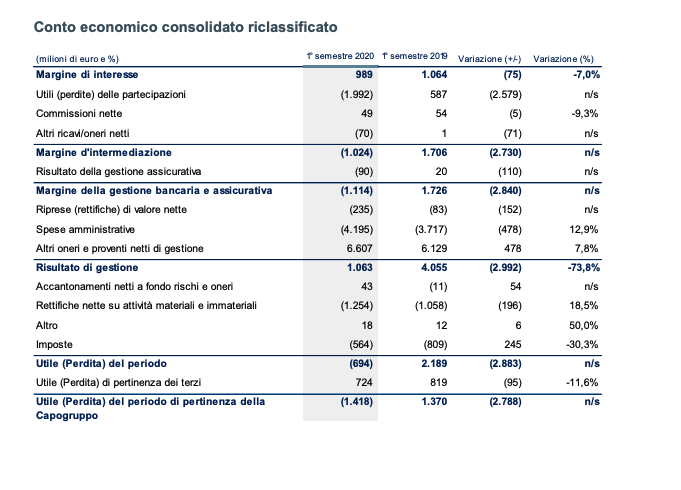 Nonostante gli effetti della pandemia Covid-19, l’utile netto della Capogruppo risulta pari a oltre € 1,3 Mld (€ 1,5 Mld nel primo semestre 2019) con un margine di intermediazione che si attesta a € 1,9 Mld, sostanzialmente in linea con il risultato del primo semestre 2019.