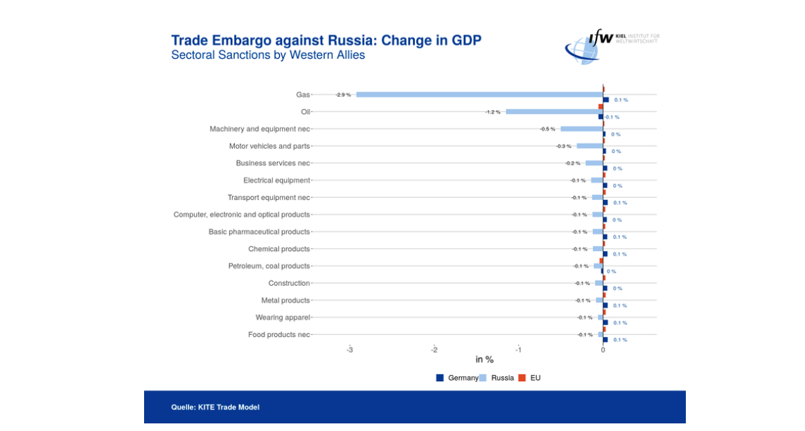 Se tutte le importazioni e le esportazioni si fermassero, secondo le simulazioni del Kiel Institute for the World Economy (IfW) riportate dal Sole24Ore, “le ripercussioni per il mondo occidentale sarebbero minime nel lungo periodo”.