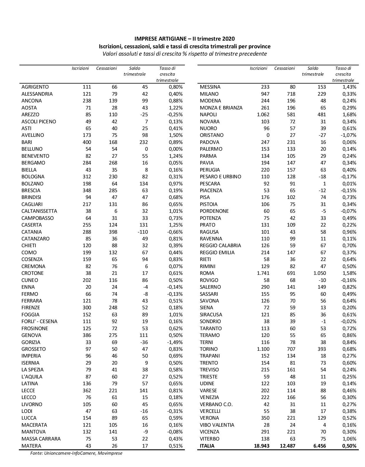 L’effetto Covid-19 continua dunque a pesare sulla nati-mortalità del sistema imprenditoriale italiano, dopo avere inciso negativamente sull’andamento dei primi tre mesi dell’anno.