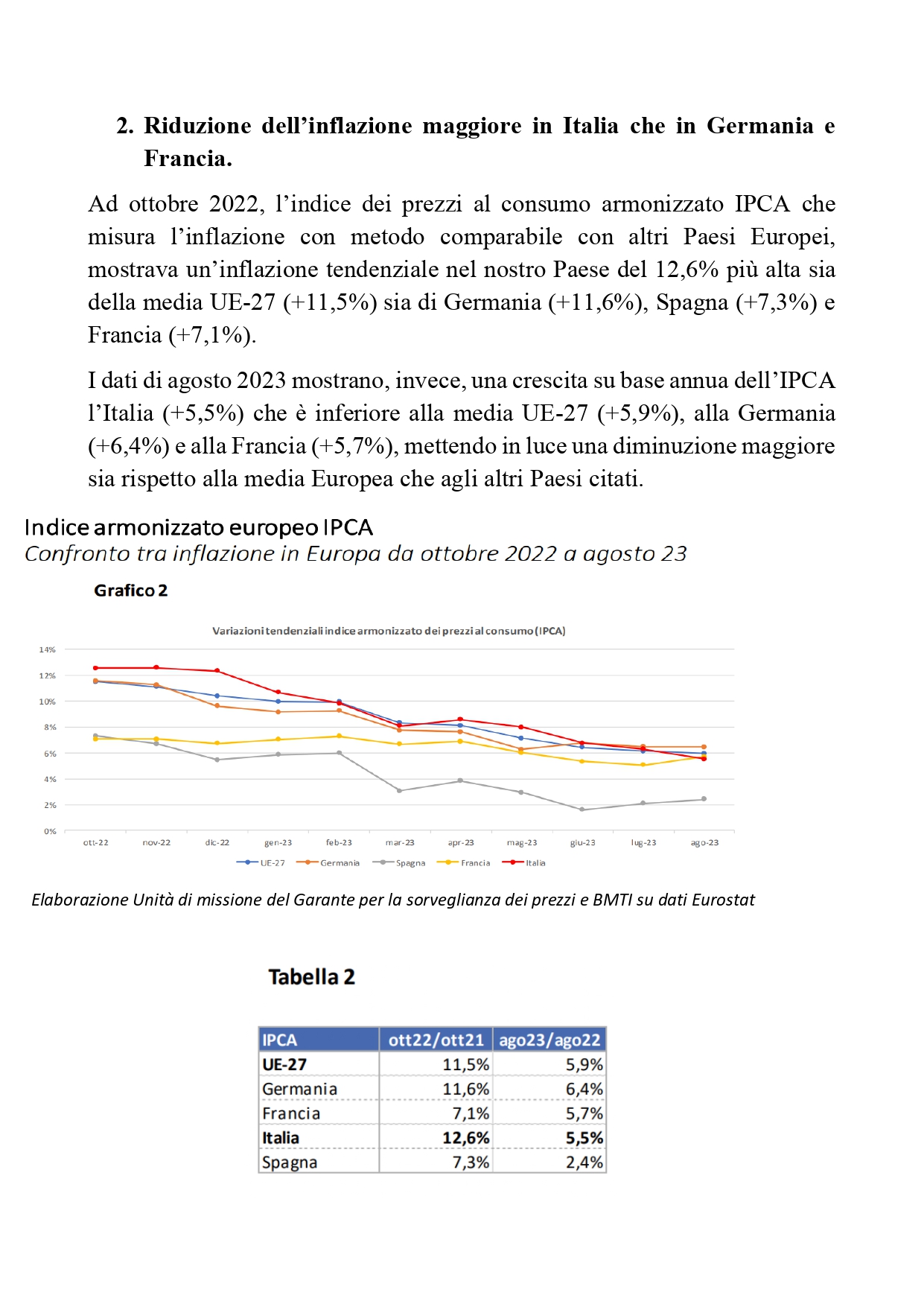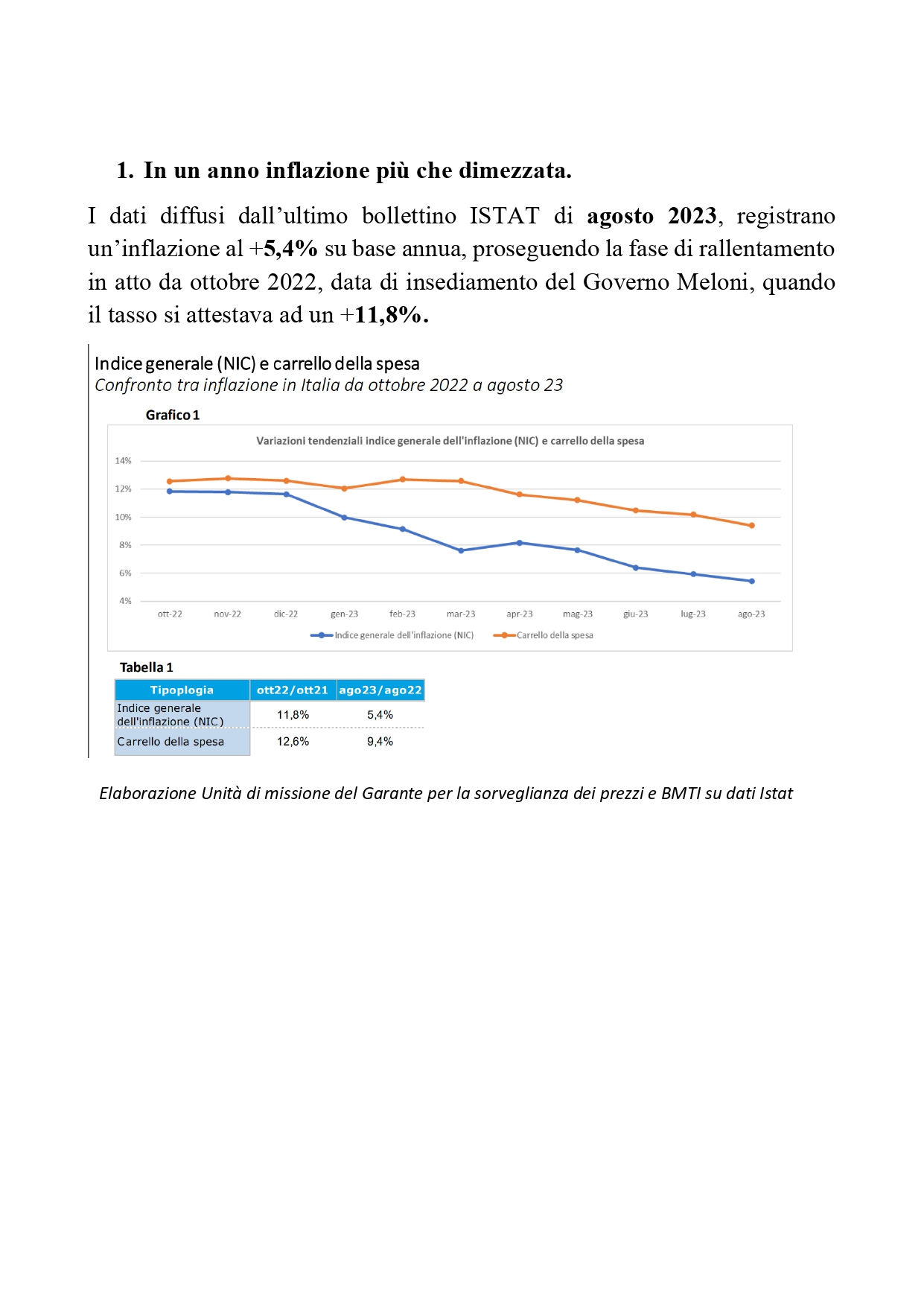 “Confronto positivo e costruttivo con i sindacati sul contrasto all’inflazione e sulle misure a tutela del potere di acquisto di lavoratori, pensionati e famiglie”, è stato il commento del Ministro delle imprese e del Made in Italy, Adolfo Urso al termine del confronto a Palazzo Chigi con le rappresentanze sindacali, che ha aggiunto: “La direzione che sin dall’inizio della legislatura abbiamo intrapreso a sostegno dei ceti medio bassi, dei lavoratori e delle famiglie è giusta e largamente condivisa ed ha ottenuto ottimi riscontri in questi mesi: l’inflazione si è ridotta più in Italia che nella media UE e le risorse sono state mirate a sostegno di chi ne aveva più bisogno. Nei decreti di lunedì altre misure nella stessa direzione, così come nella prossima manovra economica. Importante lo sforzo di tutto il Sistema Italia con il “Trimestre antinflazione” a cui hanno aderito tutte le associazioni della filiera”.