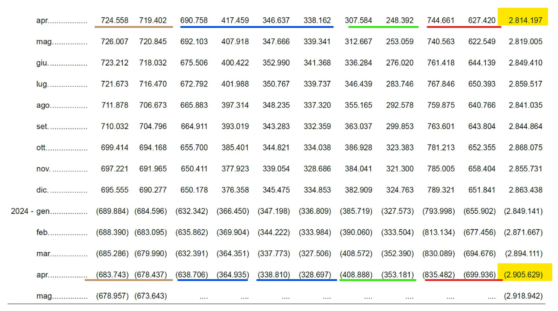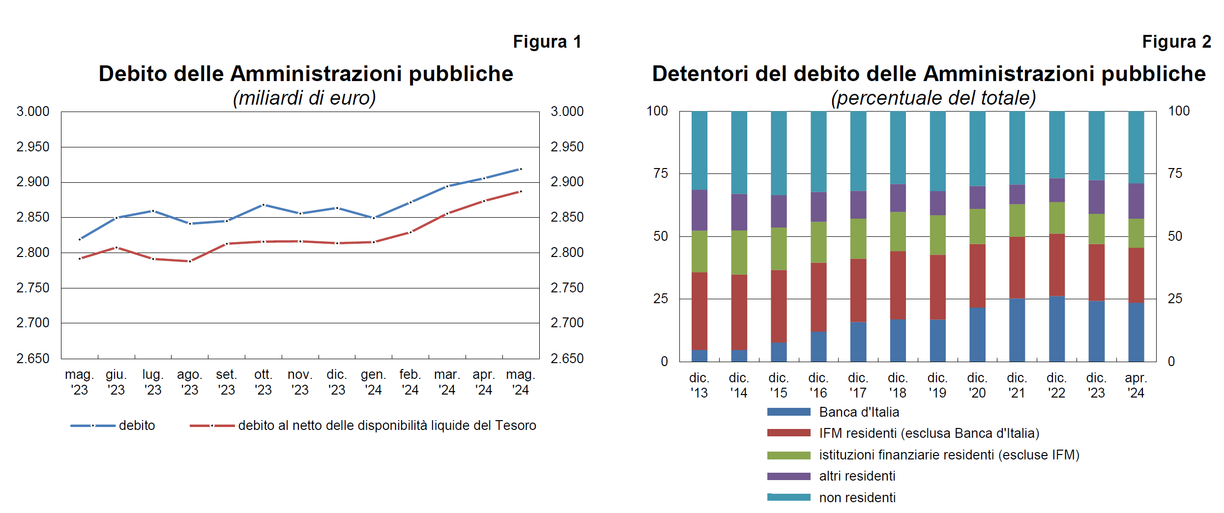 Ai temerari (o saggi) che continuano, confermiamo che a maggio in effetti il debito delle amministrazioni pubbliche è stato pari a 2.919 miliardi, contro i 2.906 di aprile. 100 miliardi secchi in più rispetto a maggio 2023. È stato l’effetto di un aumento del fabbisogno – in poche parole il saldo delle entrate e uscite – che viene finanziato emettendo nuovi titoli. Per chi ancora crede che il PNRR sia una pioggia di miliardi “gratis”, specifichiamo che quel debito contiene anche ben 88 miliardi di debiti verso “l’Europa”.