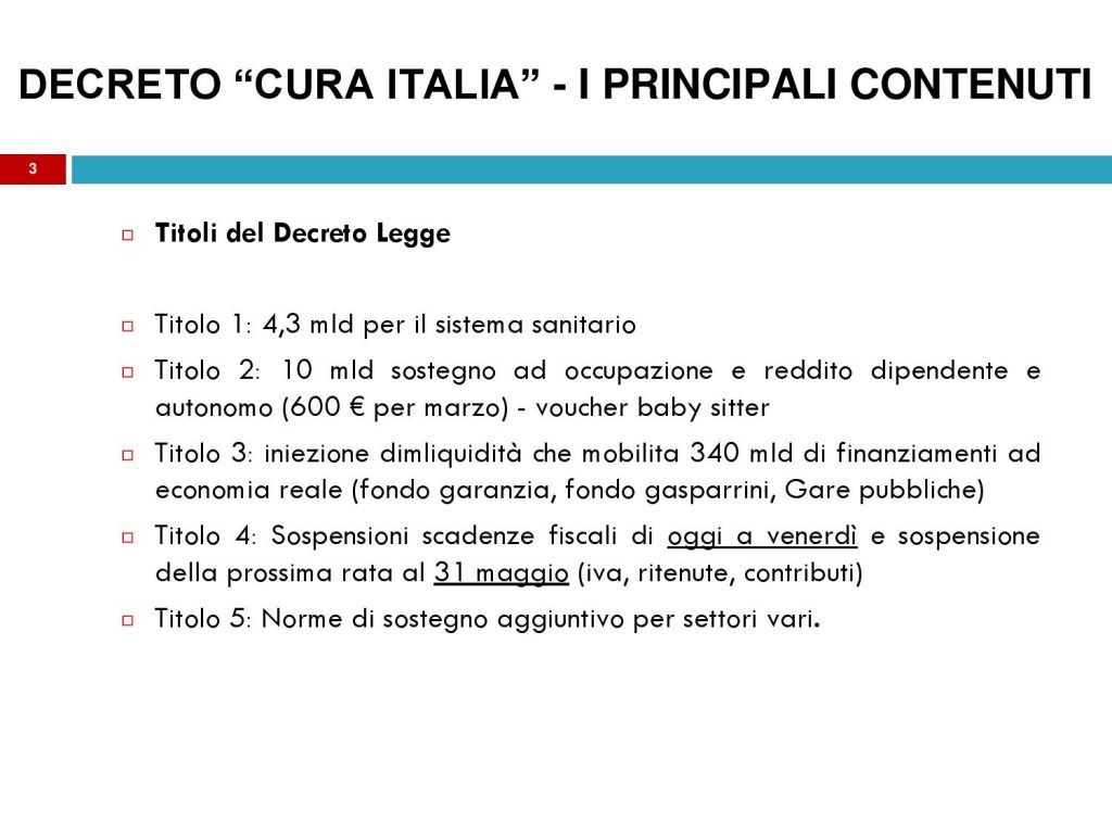 Quali sono i contenuti del decreto Cura Italia approvato dal consiglio dei ministri.