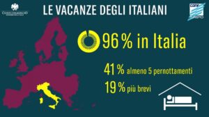 La montagna invece ha fatto registrare un incremento del 20% rispetto agli anni passati. Naturalmente l’Italia resta la meta preponderante, scelta dal 96% degli intervistati, ben 19 punti percentuali sopra la media normale di questo mese, con ottimi andamenti delle mete in grado di offrire un mix ben calibrato di mare, entroterra, enogastronomia e natura come Puglia, Toscana ed Emilia-Romagna. Per il 4% che ha comunque fatto vacanze all’estero – dato che fa riflettere sulla crisi profonda che stanno attraversando agenzie di viaggio e tour operator – solo mete europee, dove si segnala la scomparsa dalla geografia turistica di destinazioni fondamentali come Spagna e Mar Rosso.