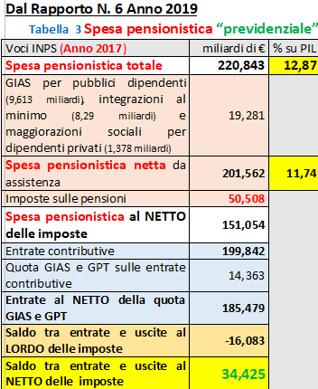 La spesa pensionistica previdenziale non è in passivo, anzi è in attivo come si evidenzierà più sotto, esponendo ed illustrando i dati macroeconomici del Bilancio del Sistema Previdenziale Italiano Anni 2018 e 2019 illustrati dai Rapporti NN. 5 e 6, curati dal Centro Studi e Ricerche Itinerari Previdenziali, diretto dal Prof. Alberto Brambilla, e presentati al Parlamento.