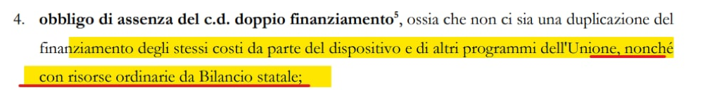 Tra queste, ce n’è una che vieta il “doppio finanziamento” del medesimo costo. Nulla di nuovo, poiché è sempre esistita nell’ambito della normale programmazione di bilancio della UE, finalizzata ad impedire che uno stesso costo ricevesse benefici da diversi strumenti o programmi dell’Unione. E tale divieto è stato inserito anche nelle norme UE (articolo 9 del regolamento 241/2021) che disciplinano il PNRR. Ma – come spesso accade quando le norme UE sono recepite in Italia – lo scorso 14 ottobre il Mef ha emanato una circolare firmata dal Ragioniere Generale Biagio Mazzotta, in cui una sapiente “manina”, peraltro ben annidata in un allegato, ha esteso il divieto di doppio finanziamento aggiungendo, oltre agli strumenti della UE, anche le “risorse ordinarie del bilancio statale”. Andando così ben oltre la disposizione del regolamento UE.