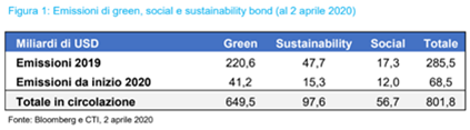 Non sorprende che siano stati proprio i green bond a predominare, ovvero gli emittenti si sono concentrati su obbligazioni che destinavano i capitali raccolti a progetti ambientali. I social bond per oltre 56 miliardi di dollari emessi sotto l’egida della International Capital Market Association (ICMA) contribuiranno al finanziamento dei progetti tesi a contrastare il Covid-19.