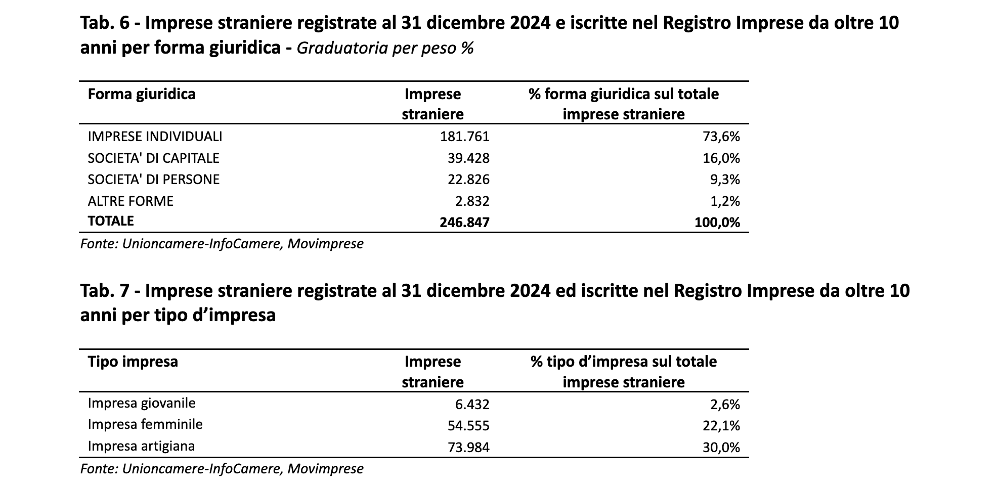 Un dato che colpisce è la significativa presenza femminile: oltre 54.500 imprese straniere longeve sono guidate da donne (22,1%), confermando il ruolo cruciale dell’imprenditoria femminile straniera nell’economia italiana.