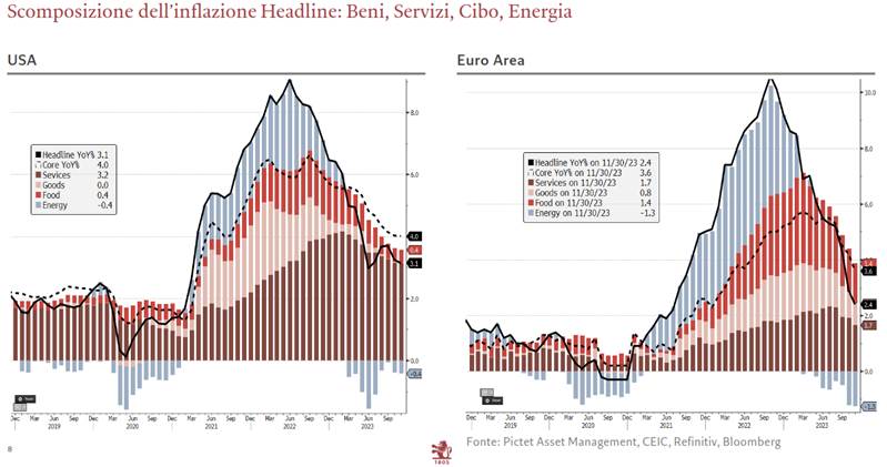 LA DISINFLAZIONE PROSEGUE IN USA ED EUROPA, ANCHE SE LA COMPOSIZIONE DEL FENOMENO INFLATTIVO È DIFFERENTE