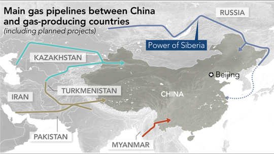 Ne possiamo trovare traccia anche nelle vicende occorse al Turkmenistan. Dopo una lunga fase di svendita delle proprie risorse ai russi, la crescita dei prezzi iniziata dopo il 2000 provocò dei dissapori fra i due paesi che condussero, nel 2006, all’accordo del Turkmenistan con la Cina per la costruzione del Central Asia-China gas pipeline, entrato in servizio nel 2009.