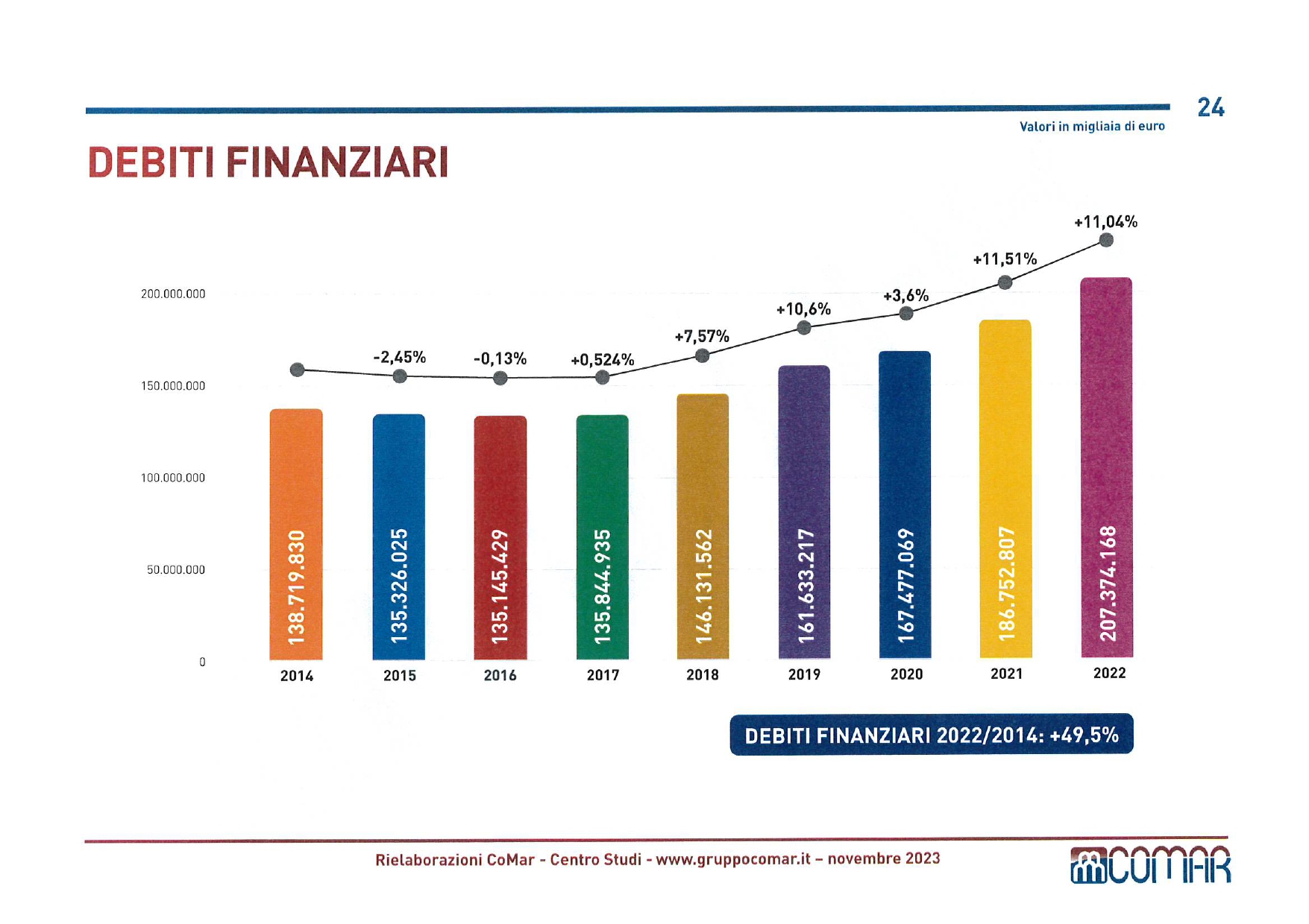 - i debiti finanziari sono aumentati soprattutto per quelle Società particolarmente esposte nel miglioramento e digitalizzazione delle reti o interessate maggiormente dall’incremento del costo dell’indebitamento.