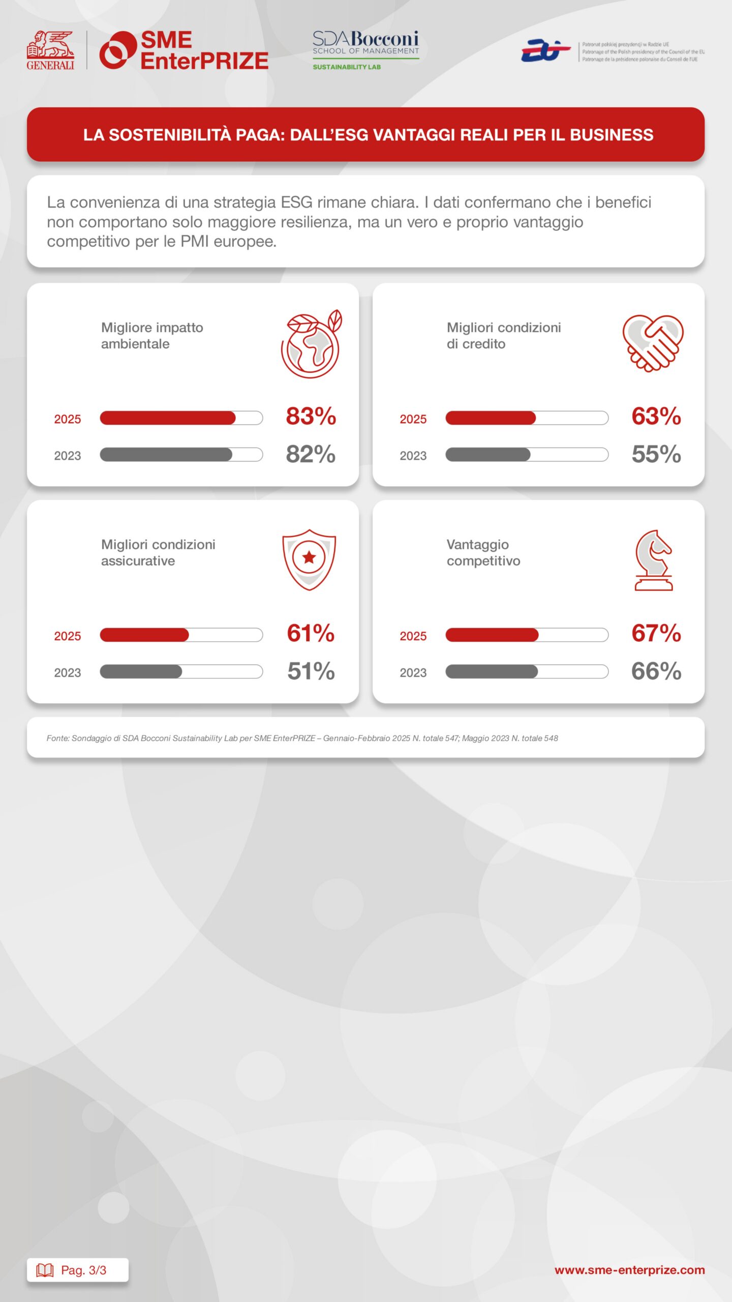 Un’opportunità anche per celebrare i 10 “Sustainability Heroes” (“Eroi della Sostenibilità”) selezionati tra oltre 8.900 Pmi in Europa e per presentare la nuova edizione del White Paper sviluppato in collaborazione con SDA Bocconi – School of Management Sustainability Lab.