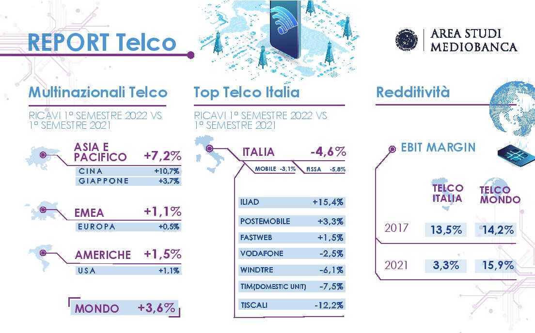 Il settore mondiale delle telecomunicazioni ha resistito al contesto geopolitico in peggioramento, registrando un giro d’affari aggregato in crescita del 3,6% annuo nel primo semestre del 2022. E a trainare il gruppo sono le società cinesi (+10,7%), evidenzia Mediobanca.