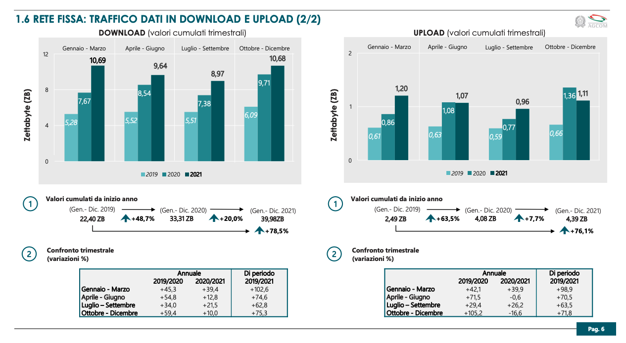 Nella rete fissa gli accessi complessivi sono rimasti sostanzialmente stabili rispetto al trimestre precedente: sono aumentati da 19,94 di settembre 2021 a 19,99 milioni di dicembre 2021.