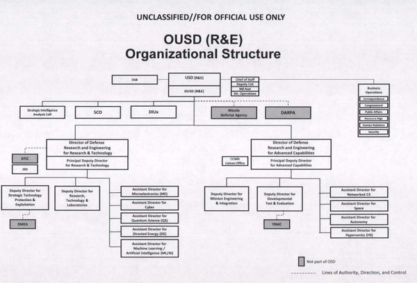 La nuova pianta organica include un Vice Sottosegretario che riferisce direttamente al Sottosegretario alla Difesa per la Ricerca e l’Ingegneria. Il memo prevede l’istituzione di due posti da Direttore, rispettivamente: