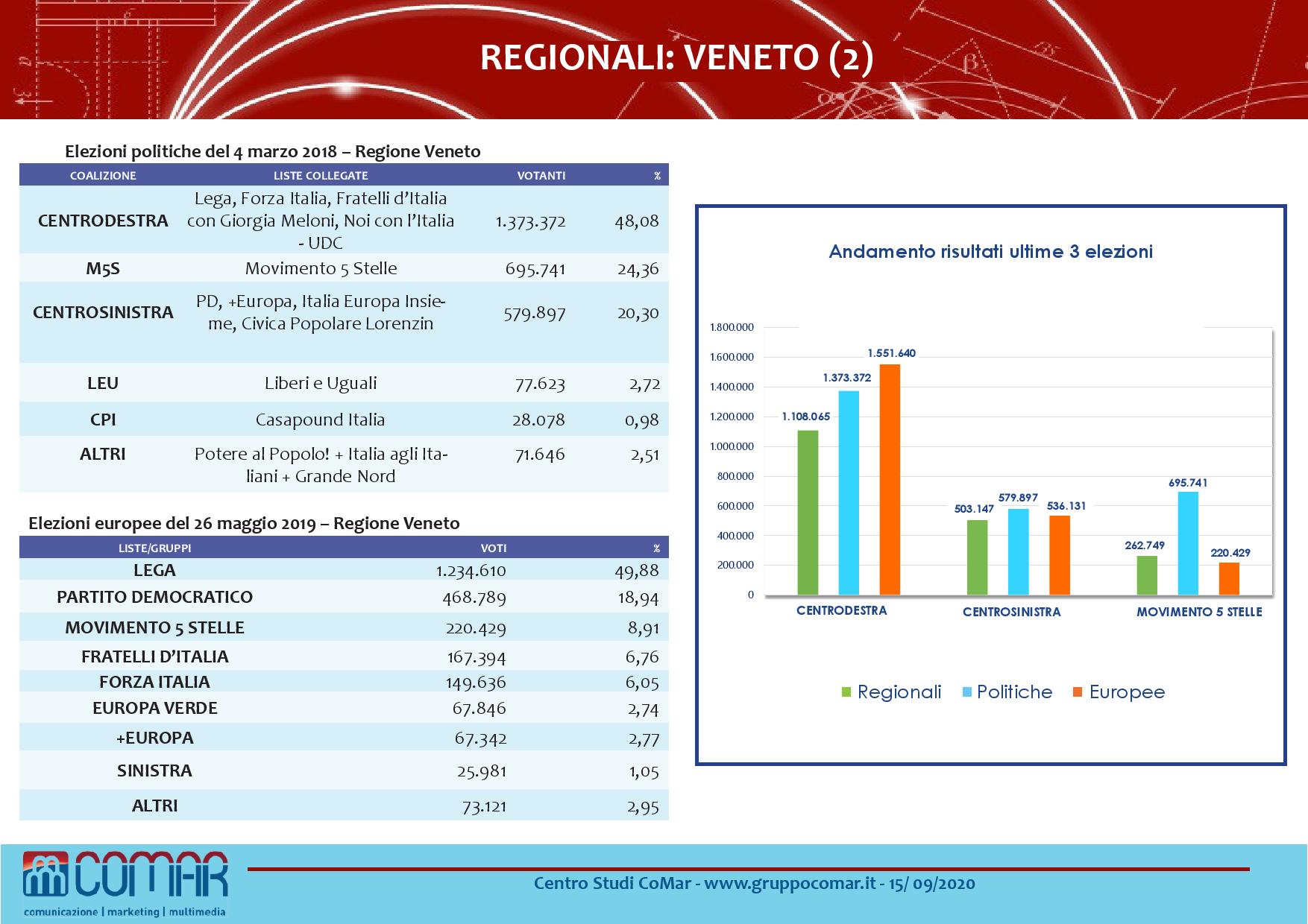 Alle Regionali in Veneto il candidato di centrodestra Luca Zaia è nettamente in testa con il 72-76% su Arturo Lorenzoni (centrosinistra) fermo al 16-20%.