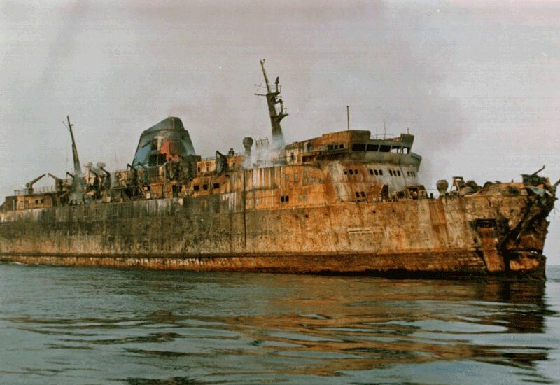 L’ufficiale di macchina della Agip Abruzzo, l’Ing. Marco Pompilio, dopo la collisione vede sfilare a poca distanza dalla petroliera un grande peschereccio d’altura.
