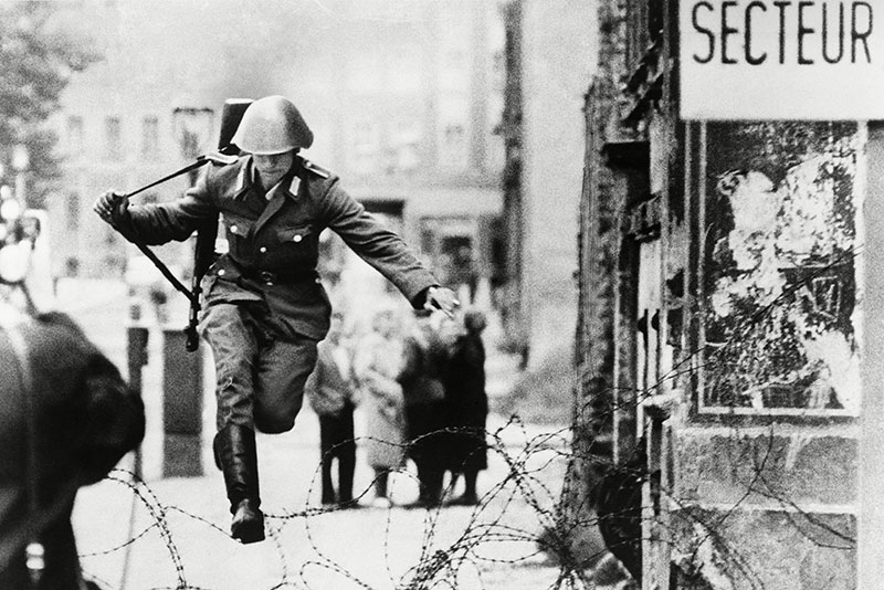 L’evento tanto atteso e temuto si era dunque compiuto. La separazione era cosa fatta. Nei giorni successivi, la barriera di filo spinato fu rapidamente sostituita da un muro vero e proprio, al cui innalzamento vennero impiegate brigate di lavoratori tenute sotto stretta sorveglianza. Si trattava ancora di un muro modesto, quasi un muretto di campagna, fatto di mattoni cementati uno sull’altro, alto appena un metro e 25. Inesorabile, correva per 45 chilometri, dividendo campi e strade, piazze e palazzi, fiumi e foreste. Nel corso degli anni verrà fortificato e perfezionato per ben quattro volte assumendo quell’aspetto spettrale che tante volte ha fatto da scenario alla letteratura e ai film di spionaggio.