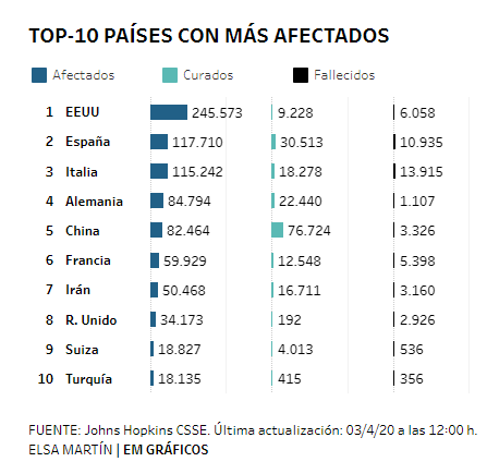 Nelle ultime 24 ore sono stati registrati 932 morti (in lieve calo rispetto ai 950 di giovedì 2 aprile), secondo i dati del ministero della Sanità. Il numero totale dei decessi, dall’inizio dell’epidemia, è di 10.935, il 20% del totale mondiale, calcola El Pais.