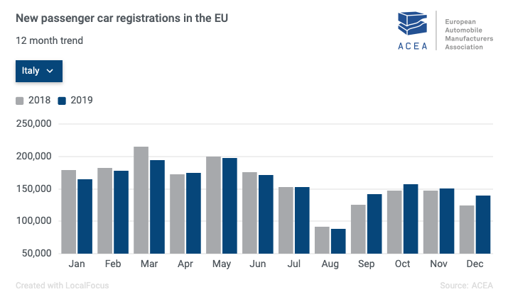 Guardando ai cinque principali mercati dell’UE, la Germania (+ 5,0%) ha registrato una crescita maggiore nelle immatricolazioni rispetto allo scorso anno, seguita dalla Francia (+ 1,9%) e dall’Italia (+ 0,3%). Al contrario, sia la Spagna (-4,8%) sia il Regno Unito (-2,4%) hanno visto il calo della domanda nel 2019.