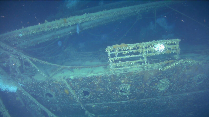 31 maggio 2015. L’ingegnere italiano Guido Gay, esperto di “idrobotica” ed inventore dei sottomarini robotizzati “PLUTO”, individua il Crispi a largo di Bastia a 500 metri di profondità.