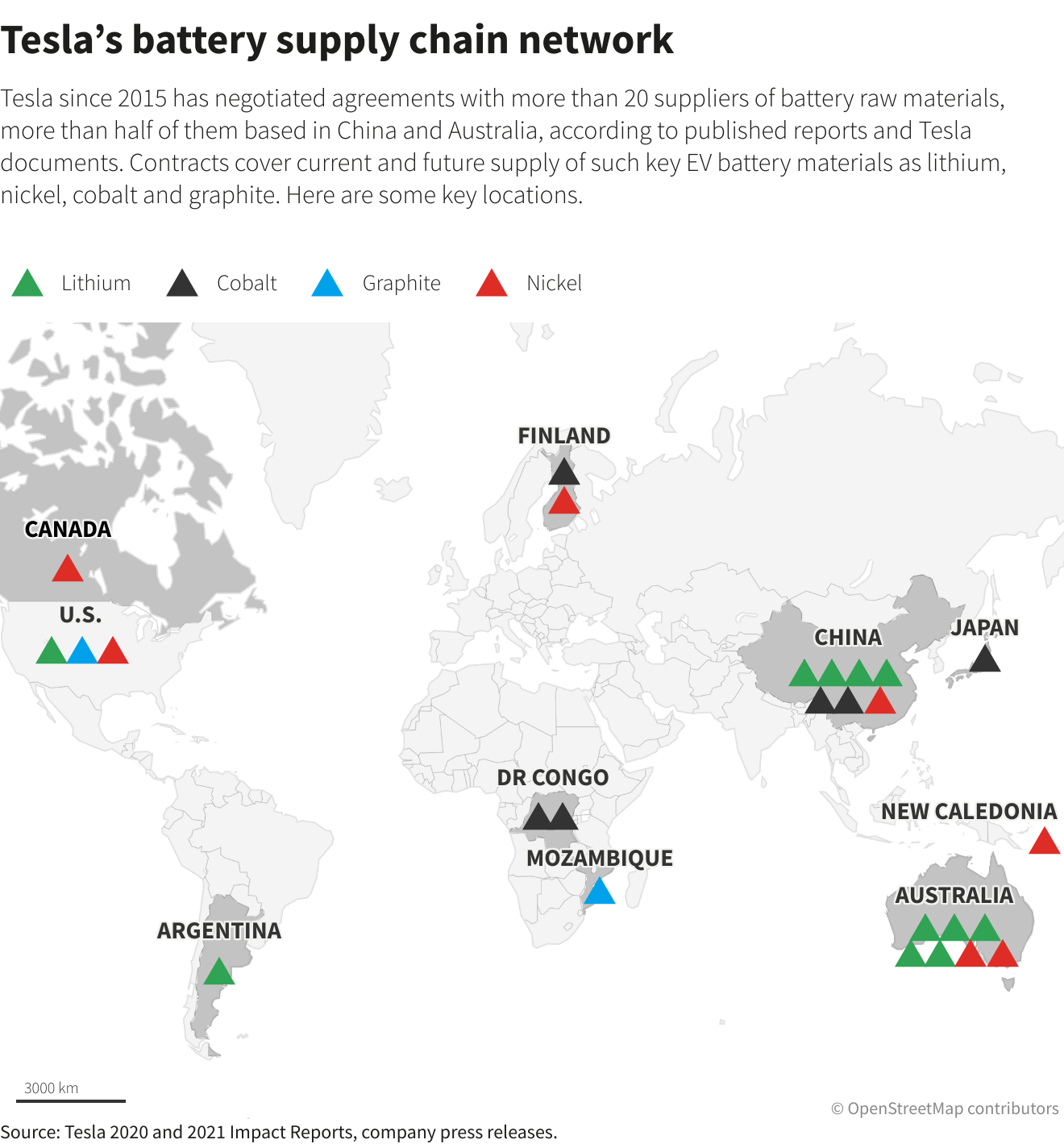 Gli esperti dicono che al momento non esiste una capacità di estrazione e lavorazione delle materie prime sufficiente a soddisfare gli obiettivi di produzione di Tesla al 2030.
