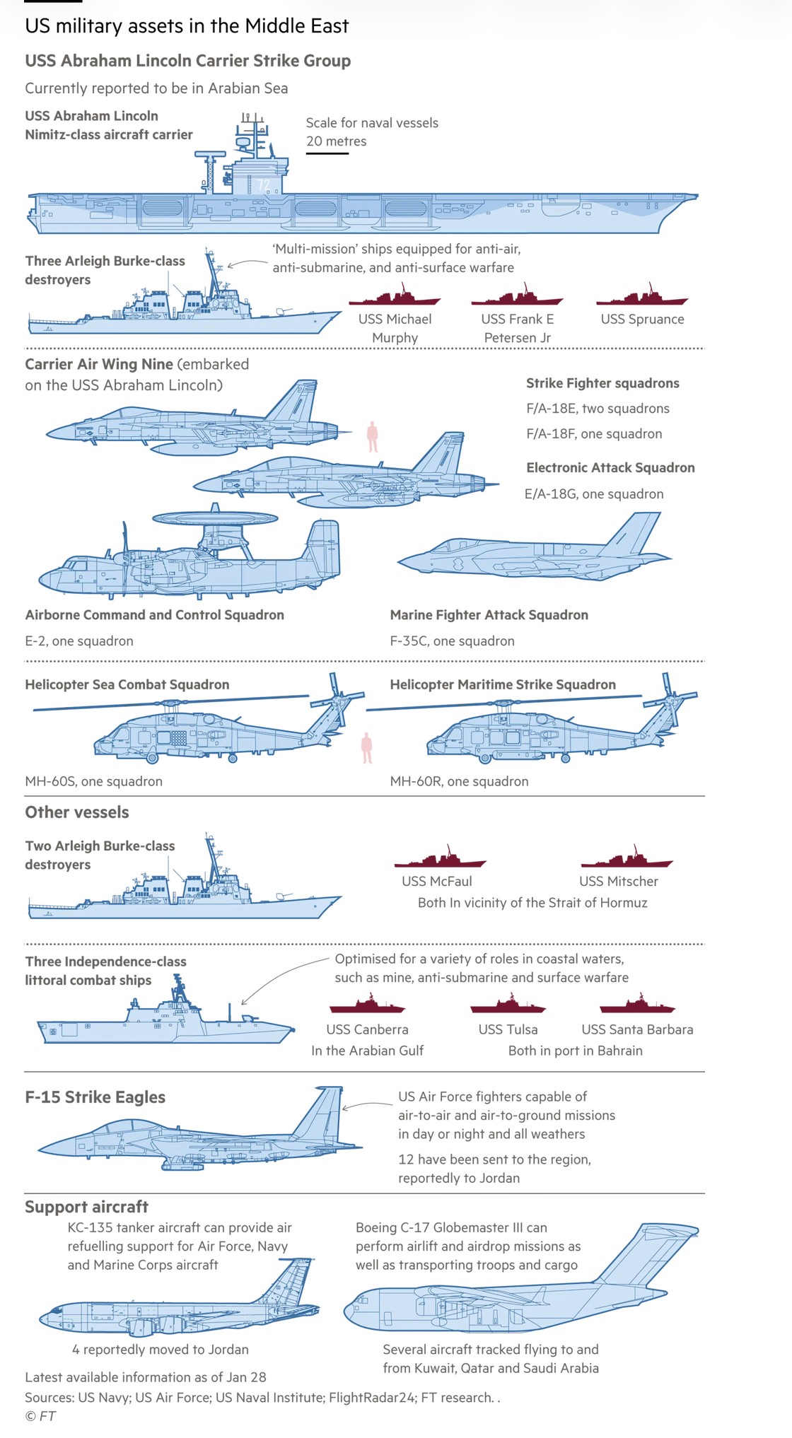 “Sembra che gli Stati Uniti stiano pianificando di usare la forza militare”, sia in attacco che in difesa, ha affermato al Financial Times Seth Jones, ex funzionario del Pentagono e delle operazioni speciali statunitensi. “Quello che è meno chiaro sono gli obiettivi”.