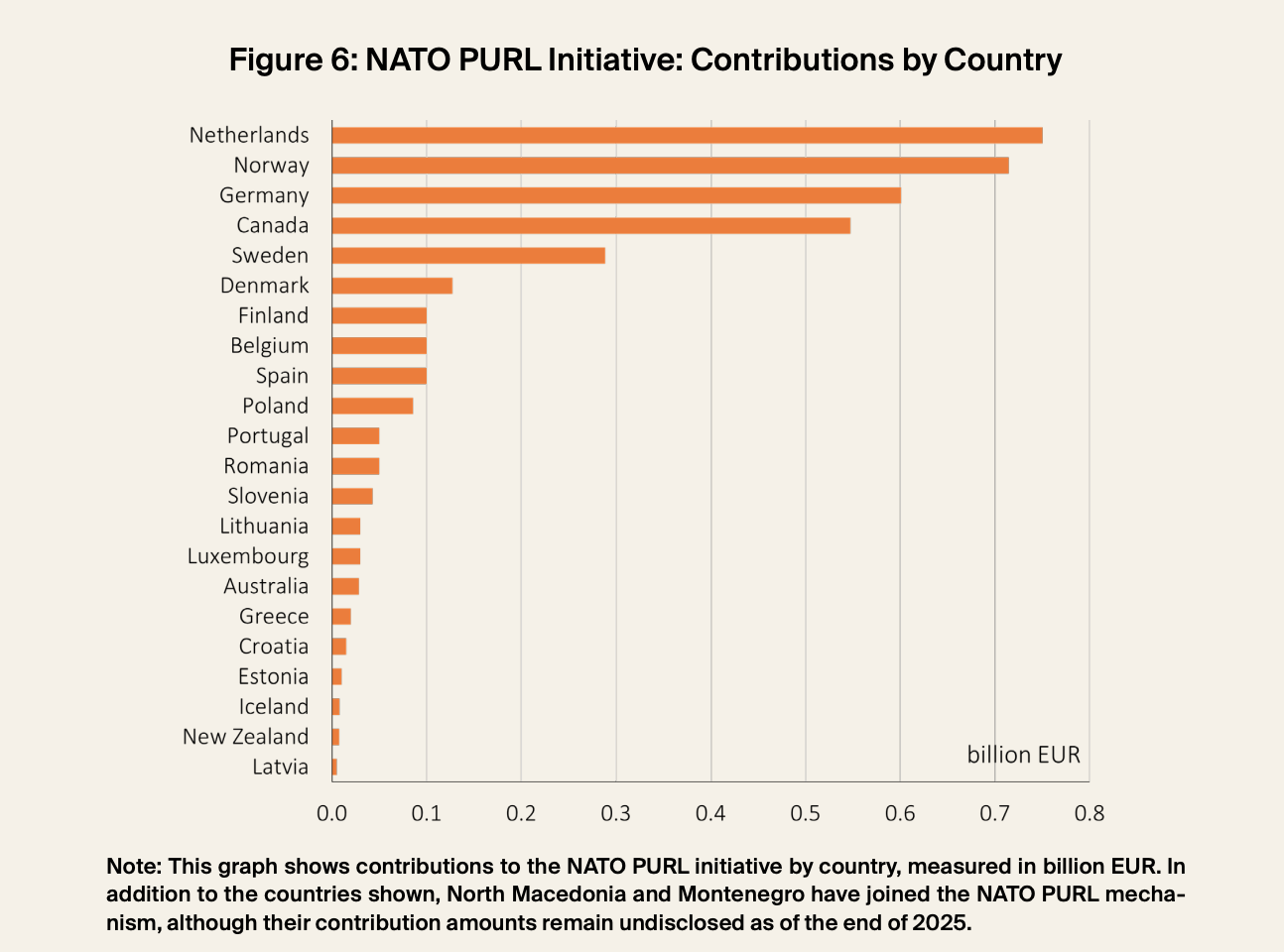 Infine, nel 2025 sono entrati in atto nuovi strumenti multinazionali di sostegno all’Ucraina, tra cui la Nato Prioritized Ukraine Requirement List (Purl). Quest’ultima avviata nel luglio 2025 dopo colloqui tra il Segretario generale della Nato Mark Rutte e il presidente statunitense Donald Trump.