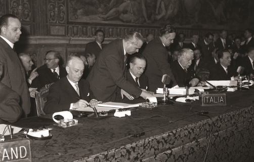 Quel giorno di 60 anni fa, la cerimonia era stata fissata per le 18 in Campidoglio, nella sala degli Orazi e Curiazi. Per l’Italia c’erano il ministro degli Esteri Gaetano Martino e il presidente del Consiglio Antonio Segni. La cerimonia fu trasmessa dalla Rai in una delle sue prime eurovisioni. L’ultima firma fu messa alle 18.51.
